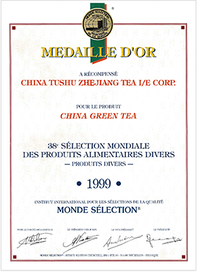 “狮峰牌”龙井茶获世界优质食品博览会金棕榈奖、浙江省著名商标、浙江出口名牌