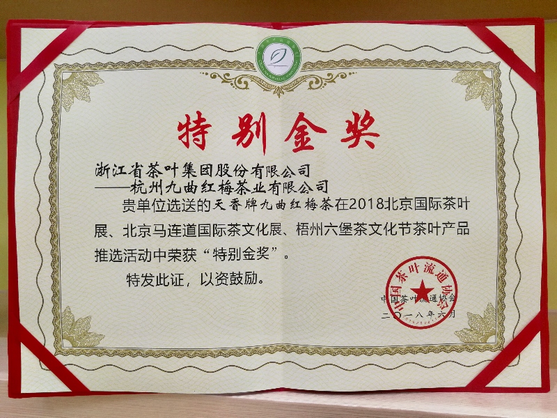 会上,中国茶叶流通协会原副会长孙丹威代表专家组宣布了2018“两展一节”茶叶产品推选的最终结果。710公海赌赌船官网欢迎您集团旗下两大杭茶双双获奖——“天香”牌九曲红梅荣获特别金奖,“狮峰”牌西湖龙井荣获金奖。