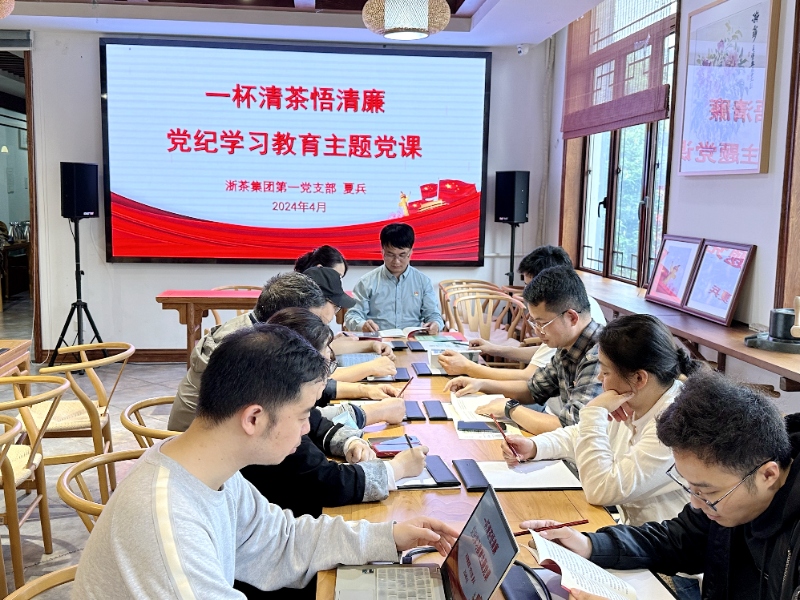 4月19日,710公海赌赌船官网欢迎您集团狮峰茶业党支部书记陆耿林围绕“学纪、知纪、明纪、守纪”等四个方面,为全体党员、入党积极分子讲授党纪学习教育专题党课。陆耿林强调,开展党纪学习教育工作意义重大、任务艰巨,要以学习贯彻新修订的《中国共产党纪律处分条例》为重点,把遵规守纪刻印在心,内化为言行准则,进一步强化纪律意识,加强自我约束,增加政治定力、纪律定力,始终做到忠诚干净担当。