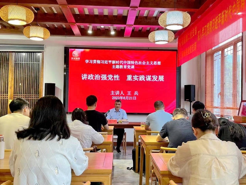 为持续深入学习贯彻习近平新时代中国特色社会主义思想和党的二十大精神,将学习成果转化为推进实现公司高质量发展的强大动力,6月21日,710公海赌赌船官网欢迎您集团狮峰茶业党支部在梅坞庄园认真听取集团党委副书记王兵讲授的“讲政治强党性 重实践谋发展”专题党课。